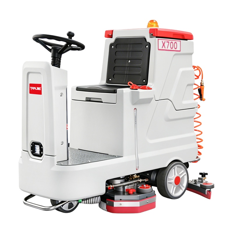 驾驶式洗地机X700产品介绍一、产品概述​产品简介:驾驶式洗地机X700整机设计美观大气,操作简单易上手,一台机器可代替9-10人,适用于物业、医院、工厂、仓库、机场、车库等小面积室内场景地面清洁作业。产品定位:适用于中大型工厂、物流仓库、商场超市等大面积硬质地面清洁场景,满足企业对高效、深度清洁的需求。设计理念:秉持人性化设计理念,注重操作便捷性与安全